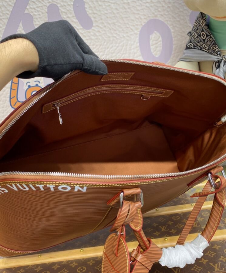The Alma Travel GM bag is fashioned from Epi Soft XL calfskin. As opposed to the sturdier feel of the House’s emblematic Epi leather, Epi Soft XL is ultra-soft to the touch and features an oversized version of the traditional Epi embossing. Double zip closure and a roomy interior make this a stylish overnight bag.